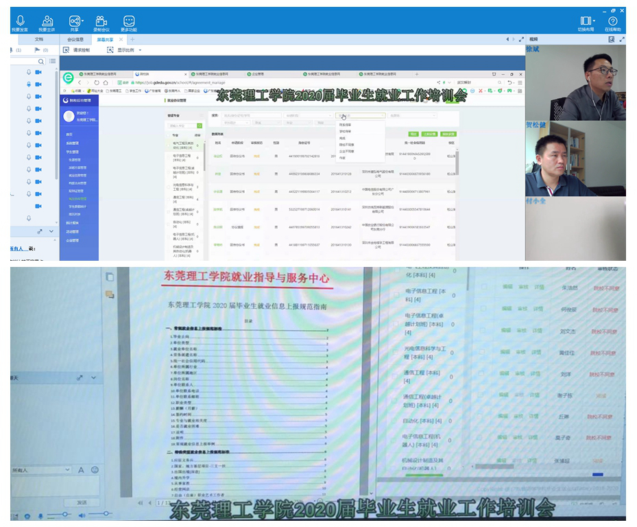 4月8日,就业指导与服务中心通过“莞工云会议”平台,以视频会议方式,举行了2020届毕业生就业工作培训会。各二级学院负责就业工作的辅导员参加会议。