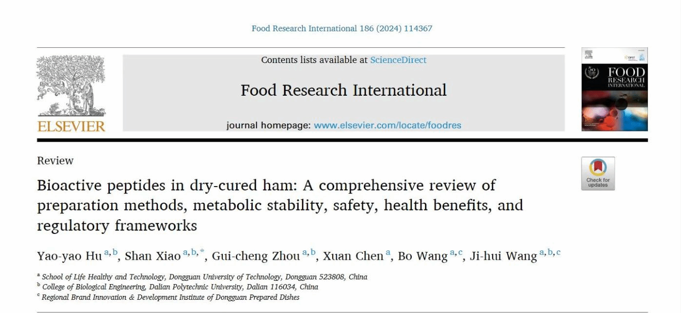 近日,我校生命健康技术学院肖珊副教授团队在国际食品顶级期刊《Food Research International》发表题为“ Bioactive peptides in dry-cured ham: A comprehensive review of preparation methods, metabolic stability, safety, health benefits, and regulatory frameworks ”的综述文章。该成果以九九精品视频一区在线久久久久久久久久毛片精品美女|国产99久久久久久免费看|中文精品99久久国产|国产69精品久久久久9999|精品久久久久久中文字幕无码|亚洲熟妇无码久久精品国产精品99|精品国产天堂综合一区在线为第一署名单位,九九精品视频一区在线久久久久久久久久毛片精品美女|国产99久久久久久免费看|中文精品99久久国产|国产69精品久久久久9999|精品久久久久久中文字幕无码|亚洲熟妇无码久久精品国产精品99|精品国产天堂综合一区在线生命健康技术学院联合培养博士生胡峣峣为第一作者,肖珊副教授为通讯作者。